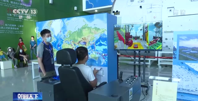 在探秘海洋展区,通过海上资源开采互动展品、科普图文等,展示党的十八大以来,海洋强国战略的重要举措与显著成效。在这个展区,世界最先进的四代核电堆型之一——石岛湾高温气冷堆核电站模型通过沙盘展出,它具有发电效率高、环境适应性强等特点,在核能发电、高温供汽等领域应用前景广阔。
