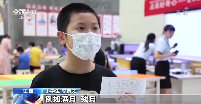 小学生 廖博文:我们学到了一些关于月相的知识,例如满月、残月,上弦月、下弦月和新月。