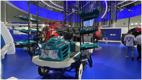 在大国制造专题展区,一款2ZG-6D1高速插秧机(北斗导航版)吸引了众多参观者驻足。国机集团展区工作人员向《每日经济新闻》记者介绍道,这款高速插秧机搭载了高扭矩大马力发动机、大直径车轮,插秧速度快,能够大大提升插秧效率。