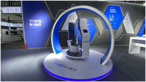 在“三首”产品展区,记者注意到一款造型独特的口腔CBCT(锥形束CT)。有方医疗的省区经理任远向记者介绍,这款口腔CBCT是公司历时4年自主研发的全球首款双源大视野 CBCT。不同于市场上现有的站立式口腔CBCT,以坐立式减少运动伪影。通常而言,市面上口腔CBCT多采用单球管,拍摄时间过长容易引发过热宕机,而这款新型口腔CBCT产品采用全球首创双源并行扫描技术,内置双球管能够交替工作,一天时间内能接受约200名患者的CT拍摄需求,大约是市面上普通仪器工作量的8~10倍。