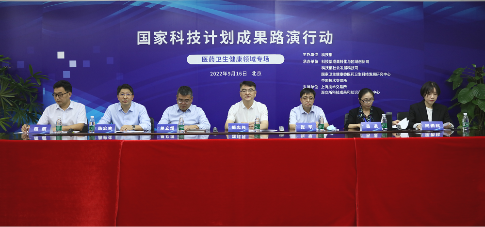 9月16日,由科技部主办,科技部成果转化与区域创新司、科技部社会发展科技司、国家卫生健康委医药卫生科技发展研究中心等单位联合承办的国家科技计划成果路演行动——医药卫生健康领域专场路演活动在国家卫生健康委医药卫生科技发展研究中心以线上线下相结合的形式成功举办。此次路演活动围绕卫生健康、药物研发、诊疗设备等领域,共25项科技成果开展路演,超过500家投资机构线上参加了路演活动,与路演项目进行了对接洽谈。