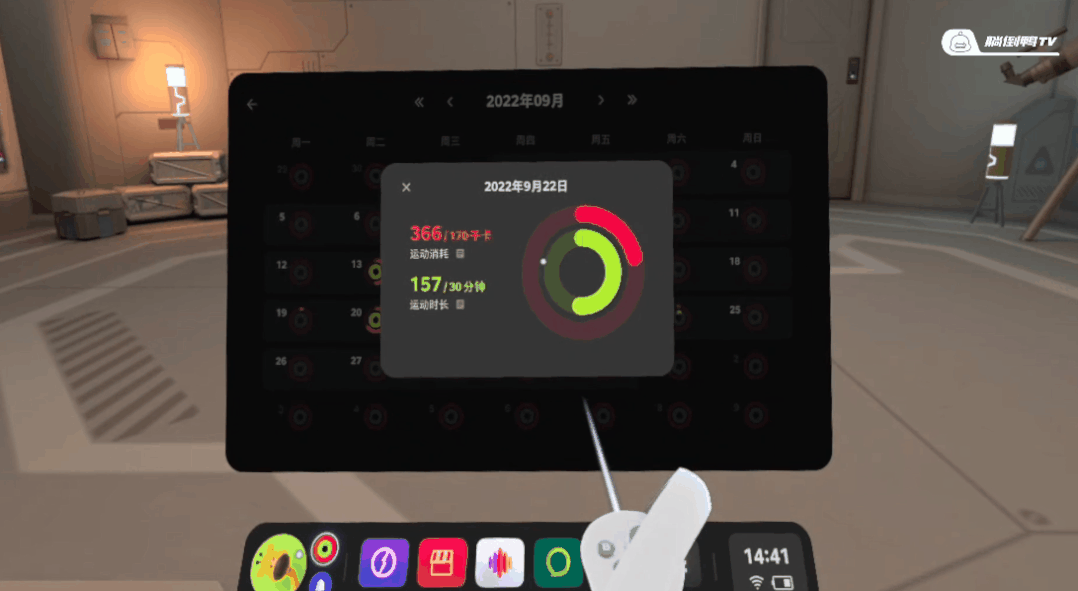 PICO内置了一个免费的“运动中心”,可以记录我每天使用设备游玩时累计消耗的热量。