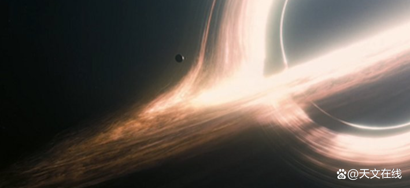 但是如果你把一个星系放在黑洞后面,从另一侧去观察,你会看到一个扭曲的星系图像。那是因为来自星系的一些光几乎擦过黑洞的边缘,但不会落入黑洞。