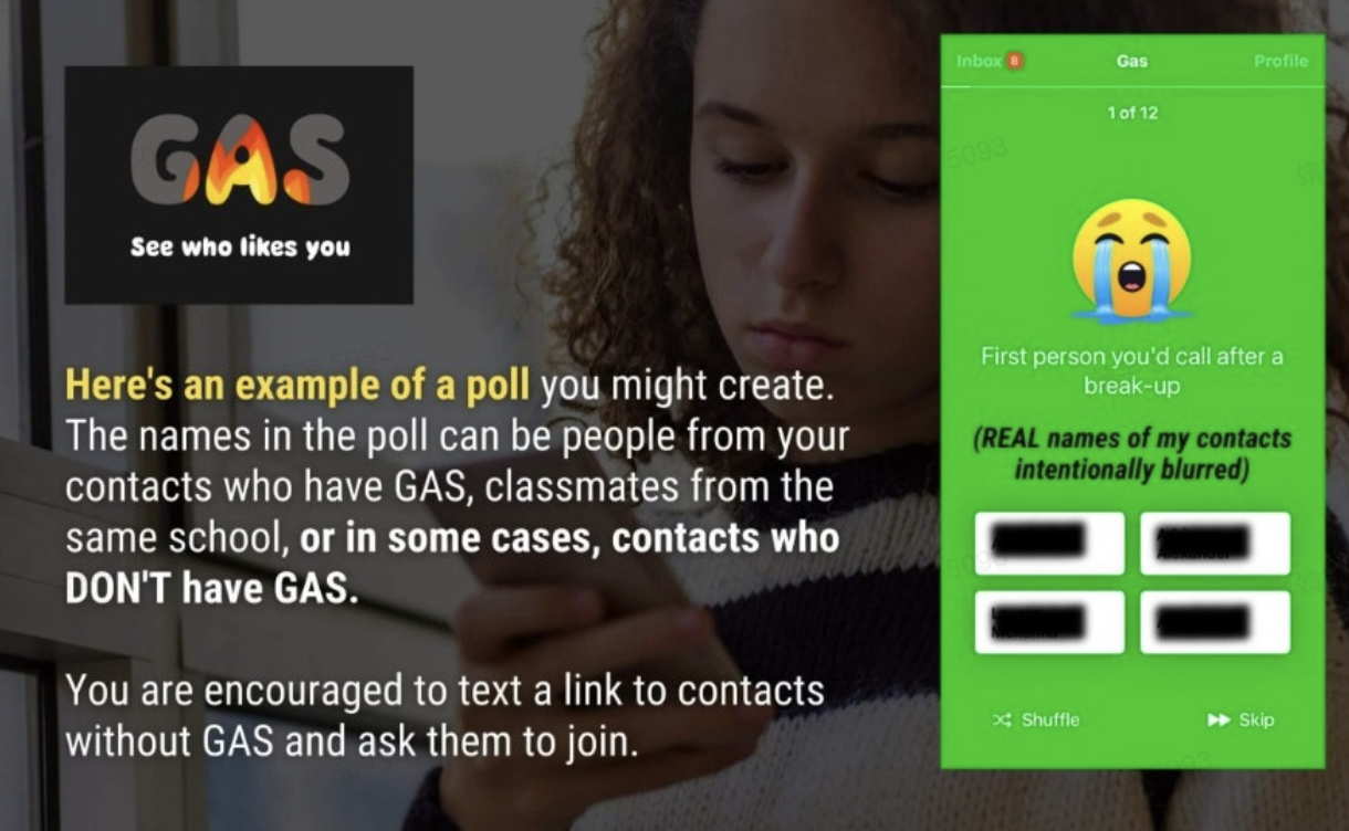而在美国,一个鼓励年轻人互相夸赞的 app——Gas 正在席卷高中校园。
