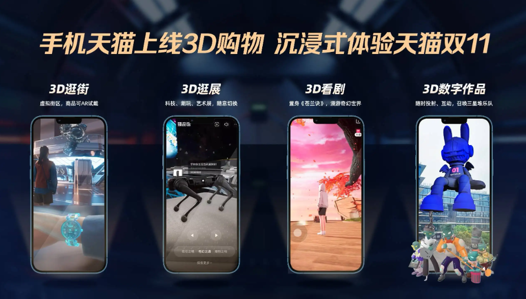 10月27日,手机天猫 App 全新升级,上线 3D 购物,全面开启沉浸式购物新体验。从今年天猫双 11 开始,3D 购物将成为天猫 App 常态化体验。