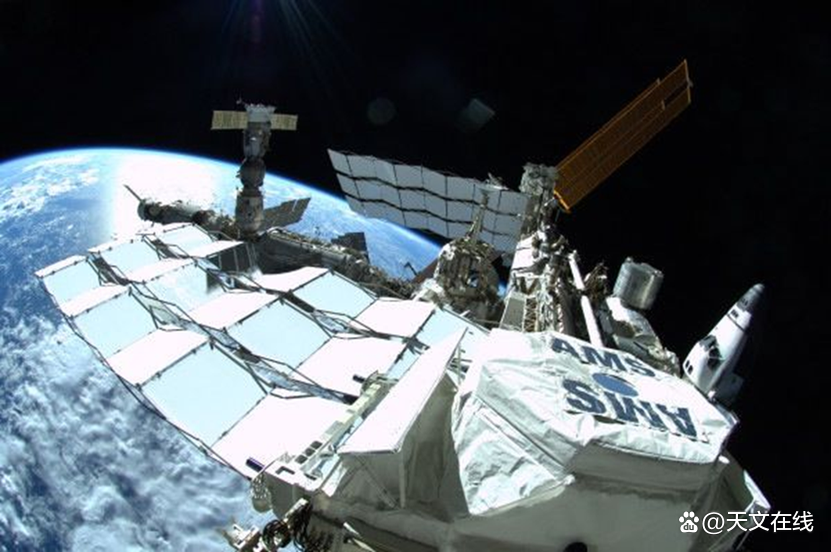 (图解:图为轨道上的阿尔法磁谱仪,阿尔法磁谱仪曾用于搜寻反物质。图源:NASA)