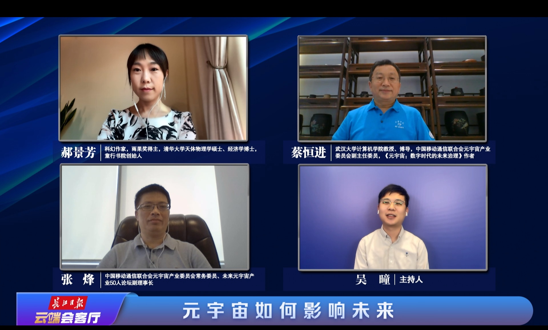 2021年以来,元宇宙受到了资本市场、学术界及大众的关注。元宇宙到底会给我们的生活方式和产业带来怎样的变革? 它将如何用新技术来赋能万物智联世界?近日,长江日报云端会客厅围绕“元宇宙如何影响未来”,邀请科幻作家,雨果奖得主、清华大学天体物理硕士、经济学博士郝景芳;武汉大学计算机学院教授、博导,《元宇宙的本质:人类未来的超级智能系统》作者蔡恒进;万商天勤律师事务所合伙人、未来元宇宙产业50人论坛副理事长张烽做客直播间,就相关话题展开深入探讨。