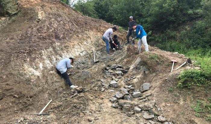 2018年玉海翼角鱼野外发掘采集现场。 盖志琨 摄