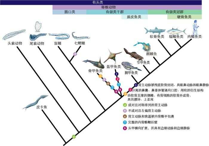 一些关键特征在脊索动物中的演化。 孟馨媛 绘图