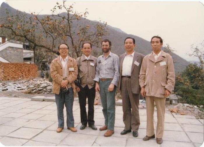1987年早期脊椎动物国际研讨会在中国举行,刘玉海先生(右一)与中外同行专家合影。 Gavin Young(澳大利亚) 供图