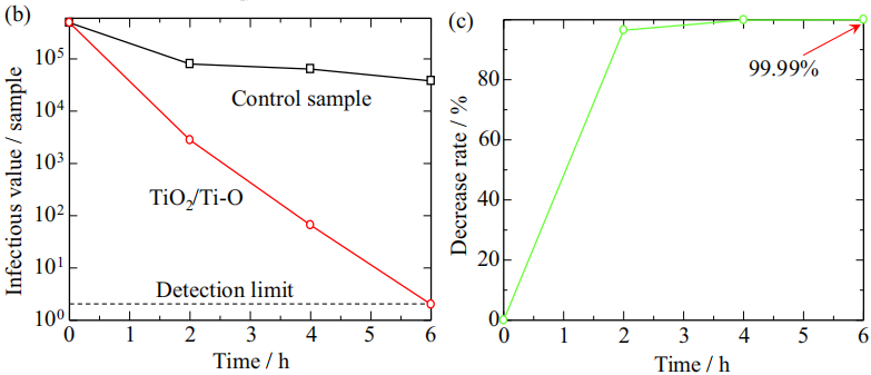 图5 TiO₂/Ti光催化小球在紫外光照射下杀灭新冠病毒试验