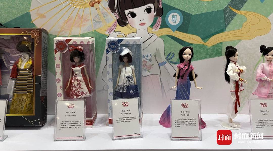 在广东可儿文化的展位上,一股浓浓的国风扑面而来,墙上是手绘版汉服少女的形象,展区摆放着造型各异的“中国娃娃”,有的身着变色旗袍,婉约动人;有的身着白色功夫袍,英姿飒爽;还有的身着现代服装,精英干练。