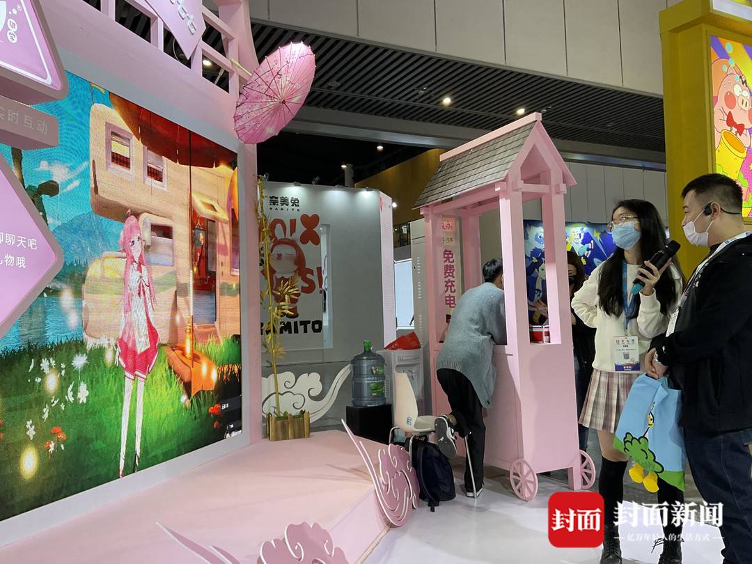 “这是我们公司打造的虚拟歌姬——元七七,全网已有超过300万的粉丝。”元气联萌(厦门)网络科技有限公司的工作人员向记者介绍道,在该公司展区的一块显示屏上,一位虚拟动漫人物正与观众进行互动,既可以根据手势跳舞也可以进行简单对话。这种新奇的互动方式受到了很多人的关注。
