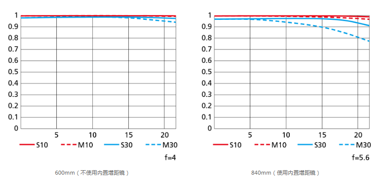 • 搭载内置增距镜,可将焦距延长至1.4倍,使镜头能覆盖600mm和840mm两种焦距。易于右手容易操作的增距镜开关可以在不改变拍摄姿势的情况下流畅地改变焦距。
