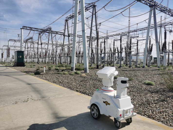 近日,在国网阿勒泰供电公司220千伏龙湾变电站,一台智能巡检机器人正在站内来回穿梭巡视,记录着各项关键数据,确保设备安全健康运行。
