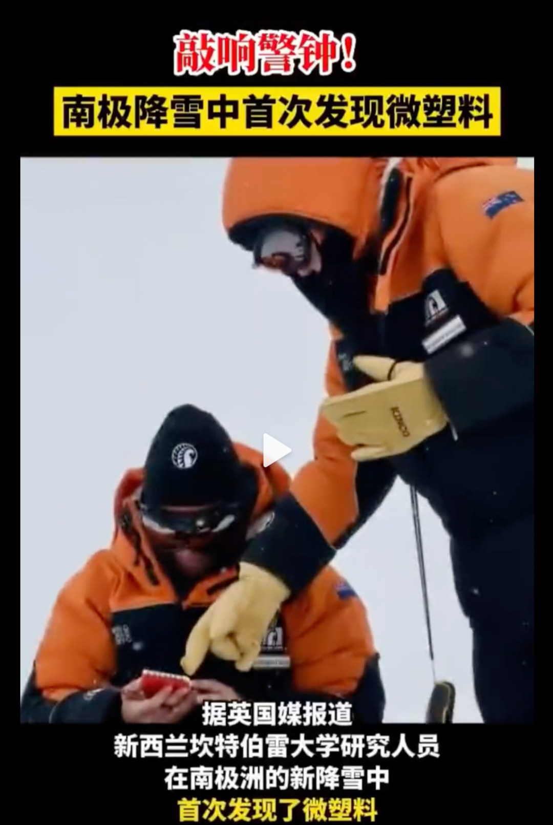 新西兰坎特伯雷大学研究人员,在南极洲的新降雪中首次发现了微塑料。