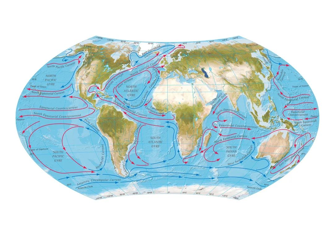 南冰洋的主要洋流系统包括向东流动的南极绕极流、向西流动的南极沿岸流和顺时针循环的威德尔环流和罗斯环流。