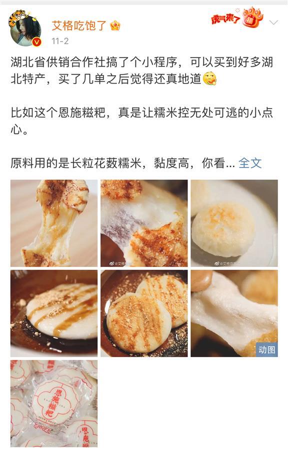 “可以买到好多湖北特产,买了几单之后觉得还真地道!”11月2日,百万美食博主“艾格吃饱了”发微博,推介“供销荆选”小程序里的农产品。