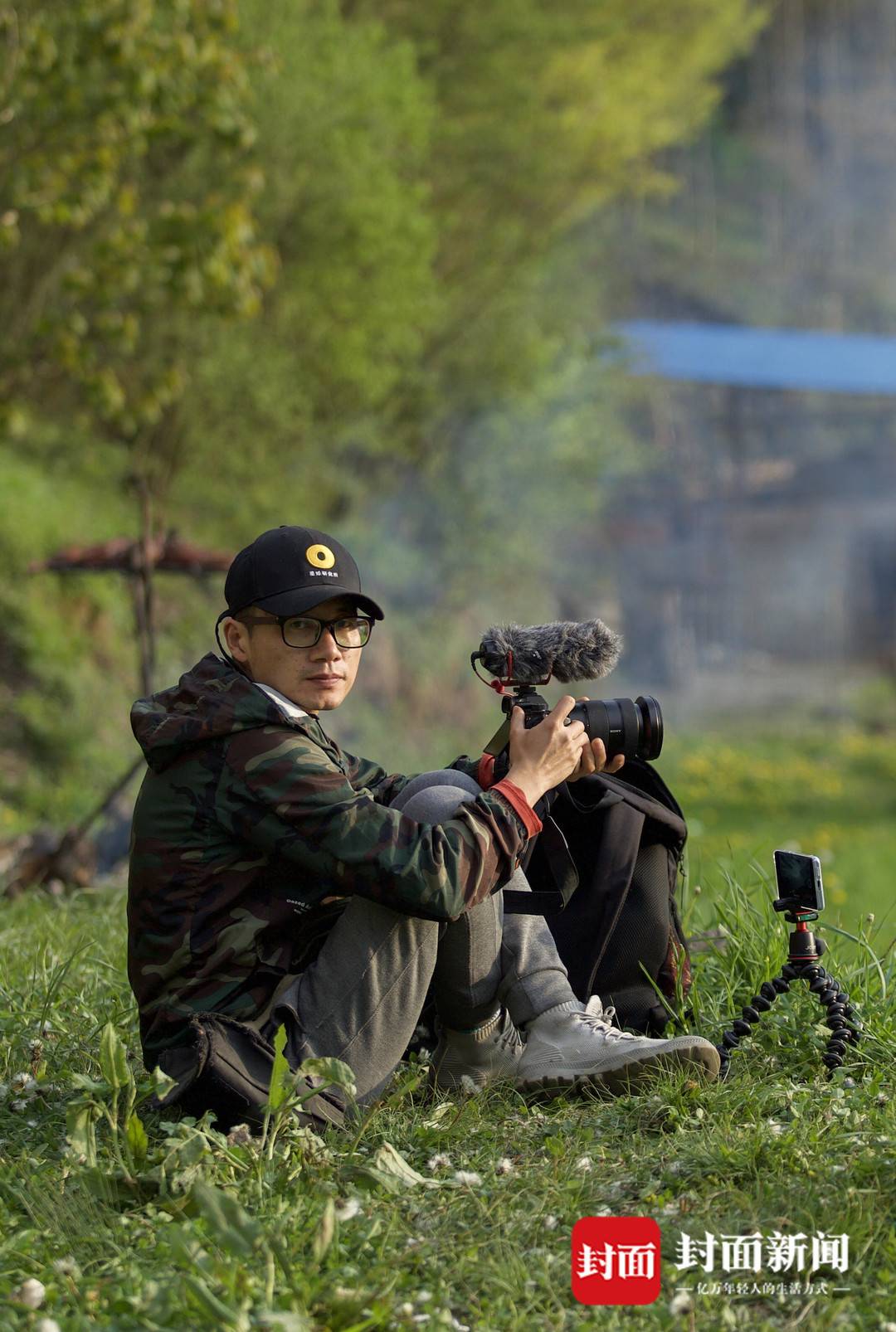 正在硗碛采访的杨涛