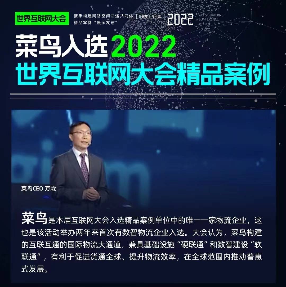 11月8日下午,“携手构建网络空间命运共同体精品案例”发布展示活动在乌镇举行,这是2022届世界互联网大会的首场重磅发布,菜鸟等12个案例入选。