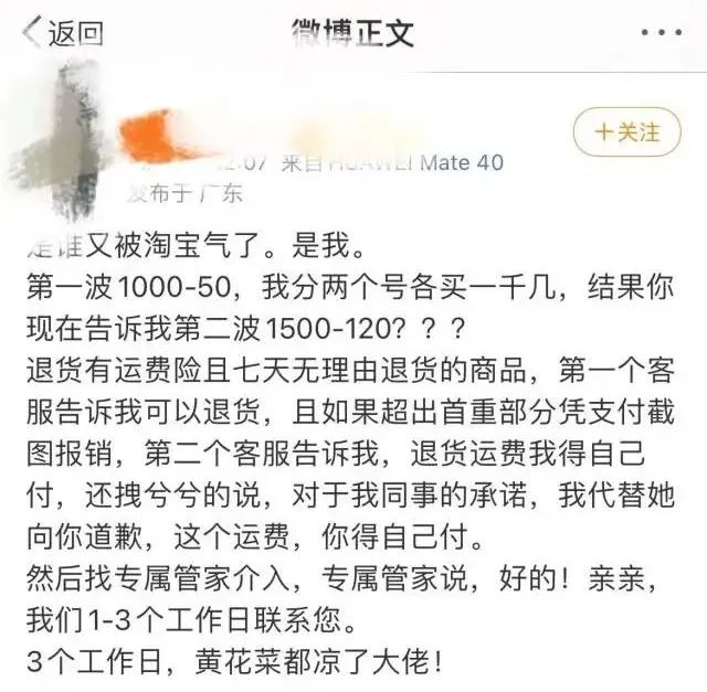 该个案涉及金额较大,显得较为特殊。不过,在正在进行的双11电商促销中,有此类似遭遇的消费者并不少。“费老劲凑了满减的优惠,结果不合适要退货发现运费比优惠下来的钱还多,白费劲了。”“商家搞第二波领券优惠活动,比第一波又更优惠了,想退货了重新买发现退货运费不菲!”一些网友在社交平台上吐槽。