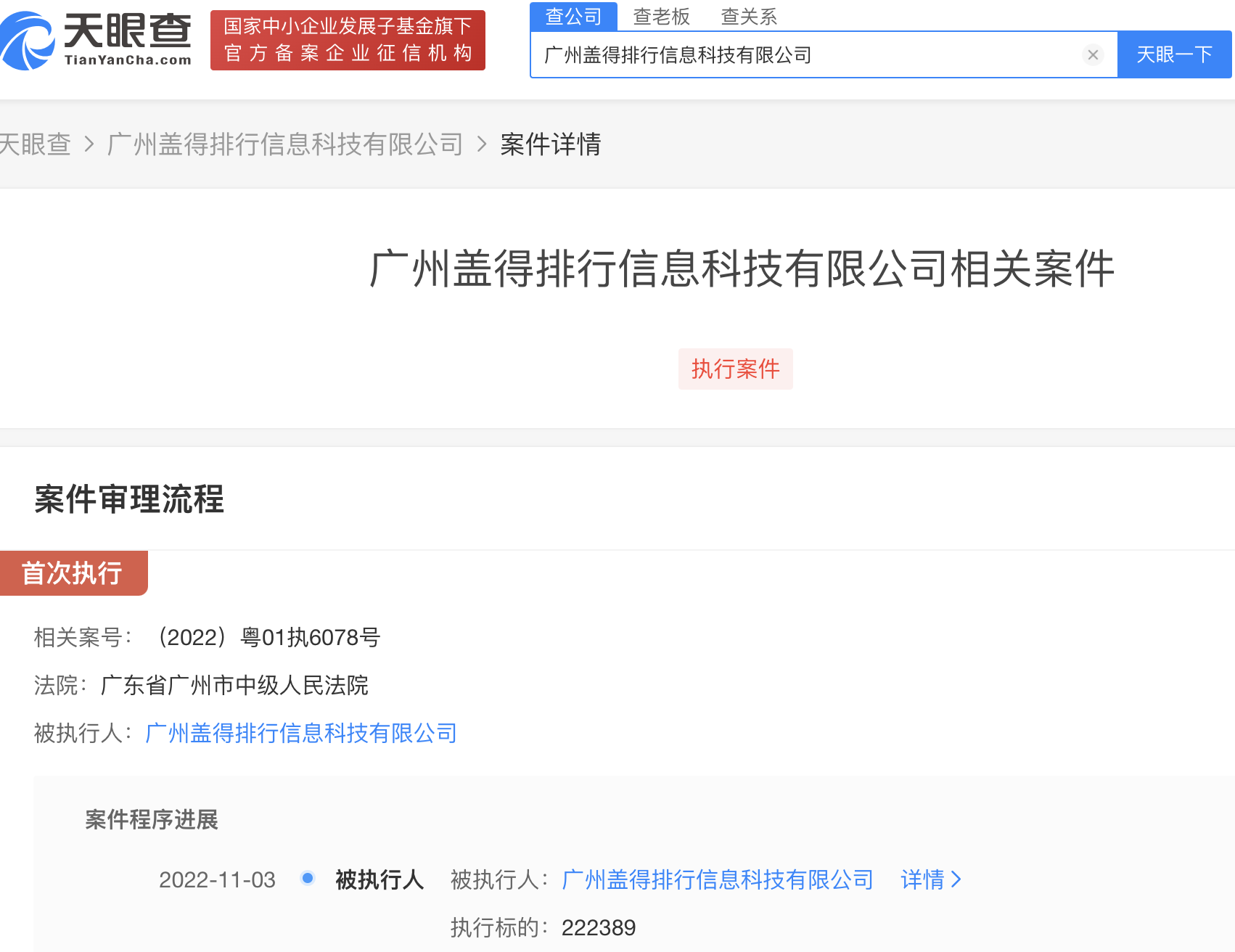 科技边角料获悉广州盖得排行信息科技有限公司日前新增被执行人信息,执行标的222389元,案号(2022)粤01执6078号,执行法院为广州市中级人民法院。