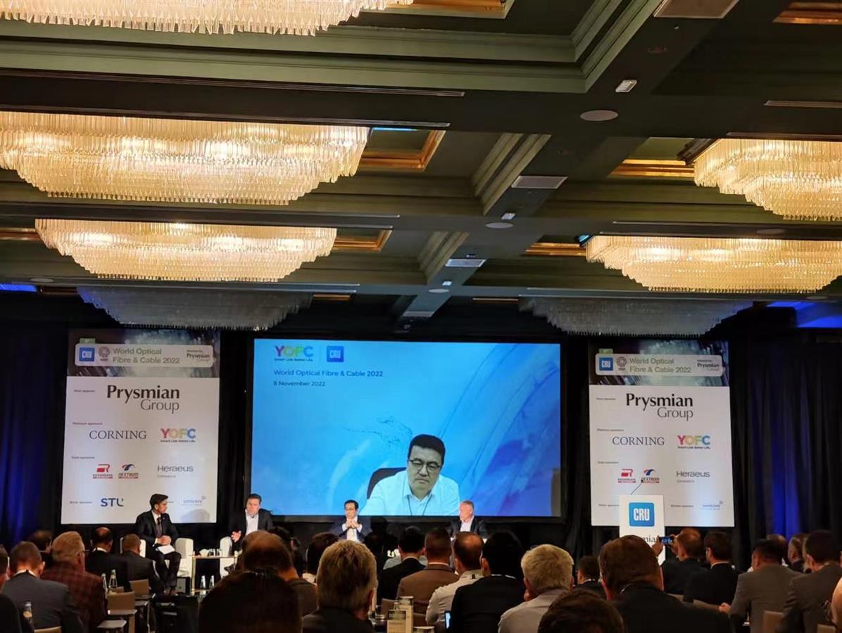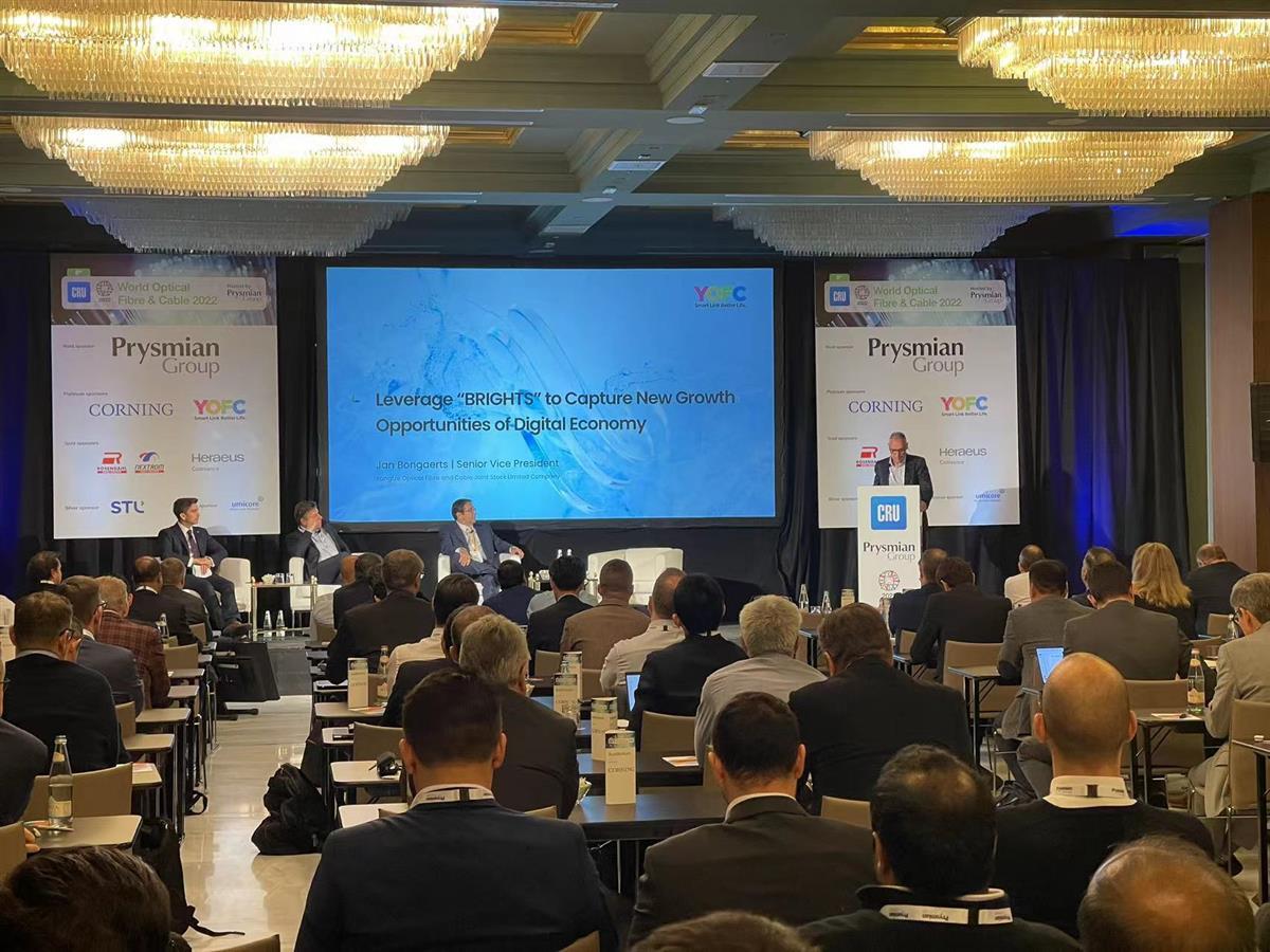 11月8日,长飞公司执行董事兼总裁庄丹受邀与欧洲普睿司曼、美国康宁等国际巨头高层进行圆桌论坛,畅谈行业态势,共话产业未来;高级副总裁Jan.Bongaerts代表长飞公司在大会上作《构筑“BRIGHTS”数字经济全光底座,迎接行业发展新周期》主题演讲。