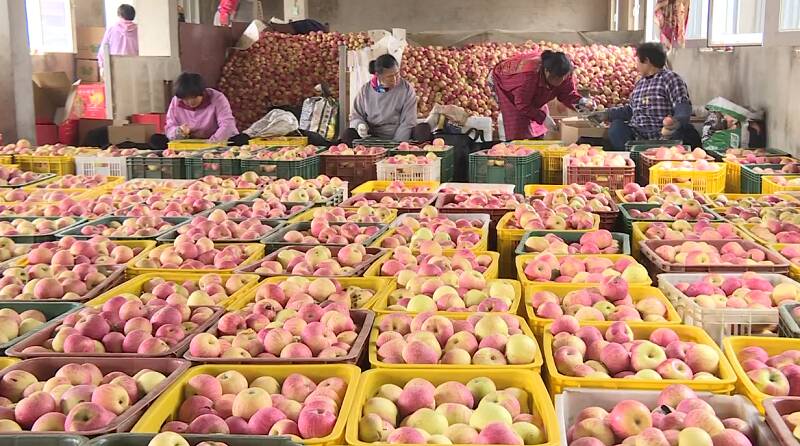 独特的地理优势加上多年的管理经验,夏克波种的苹果果个均匀、色泽鲜艳、皮薄肉脆、酸甜适中。这边山上忙着采摘苹果,在山下的仓库里,村民们则在忙活着给苹果分级,按照大小的不同,售价在每斤3元—6元不等。