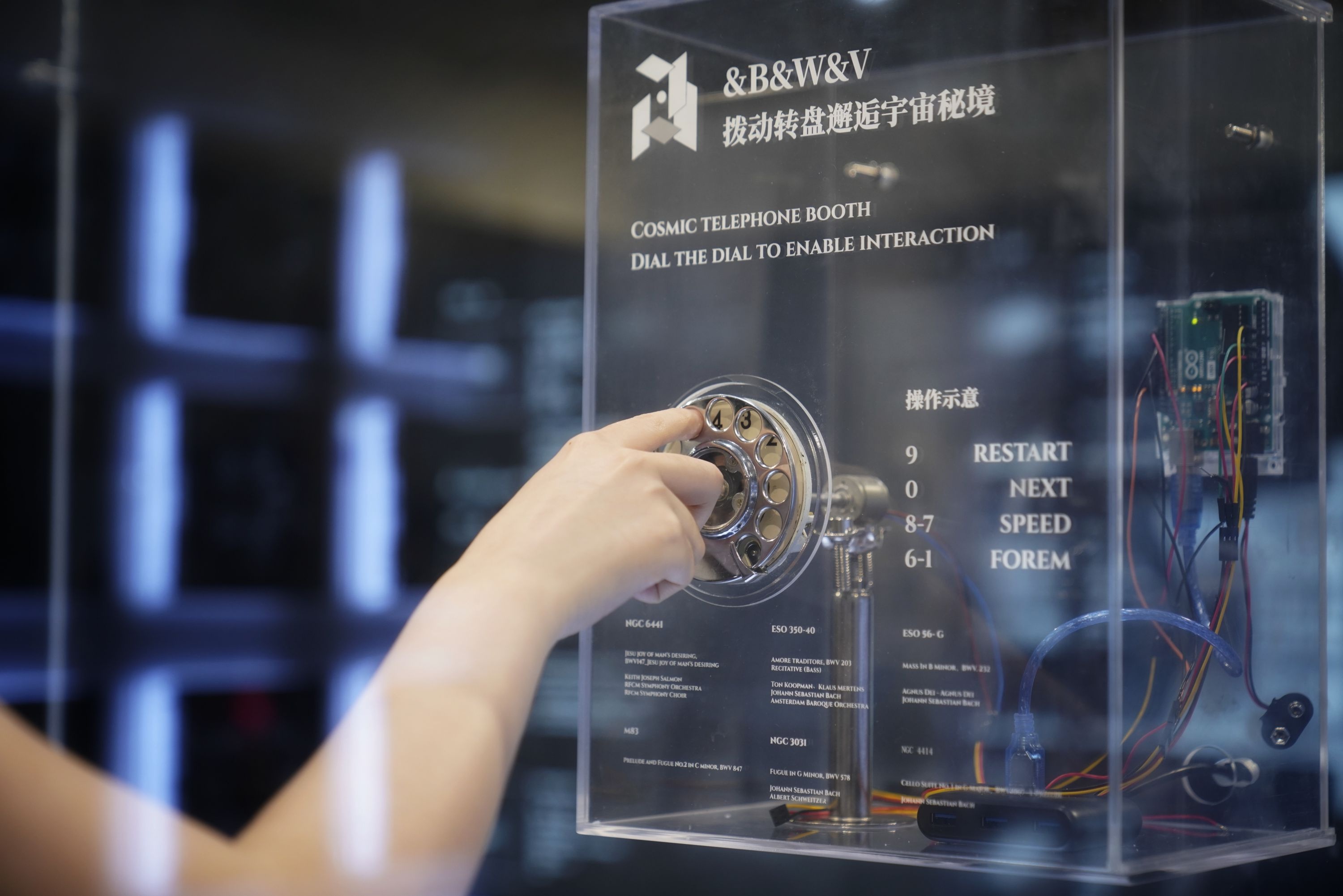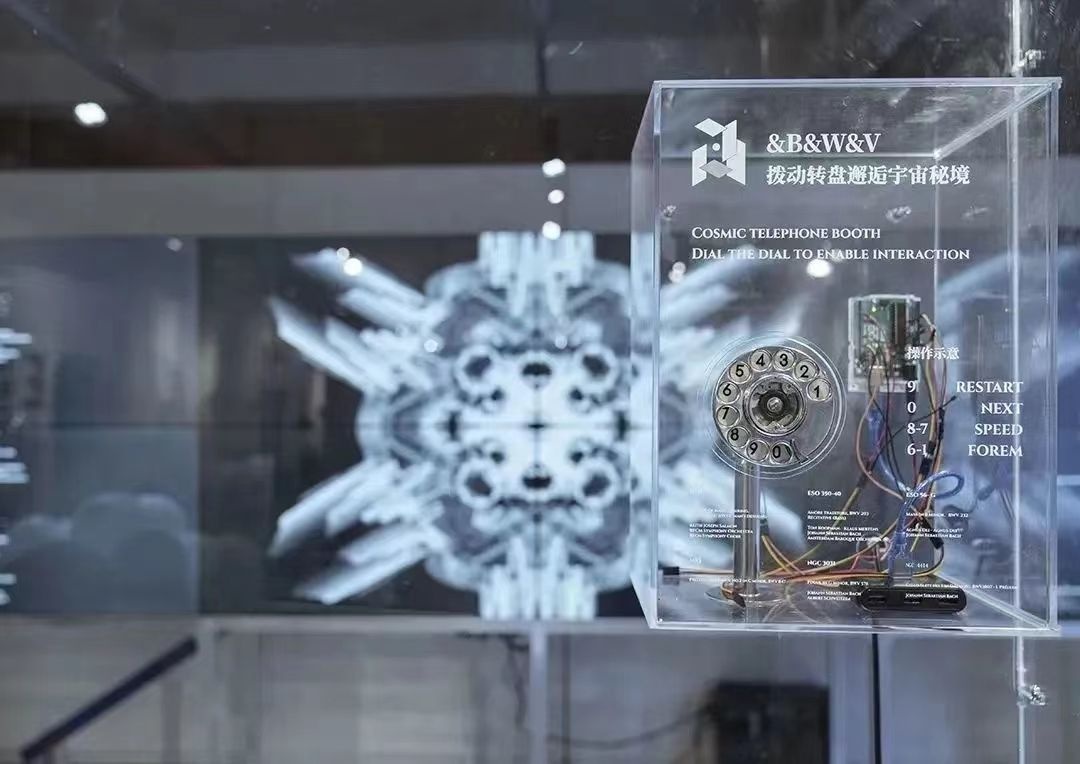 同时,俩人想到用数字连接宇宙。“通过电话上的数字将人类与宇宙相连。”张俊杰介绍,人们通过拨动电话拨盘上的数字,可以听到宇宙中不同声音,“把宇宙变成人类可观可听可感的旋律与图像,让人与宇宙的互动多元化,使科技、艺术、生命在作品中达到平衡状态。”
