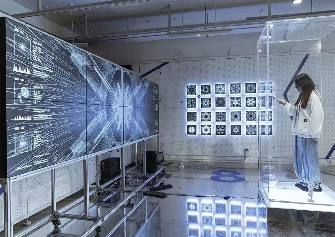 浩瀚未知的宇宙引起人类无限遐想,作品能否和宇宙相结合?张俊杰和陈海金多次头脑风暴,最终确定使用雪花作为视觉符号载体,通过不同雪花表现宇宙中不同的场景。