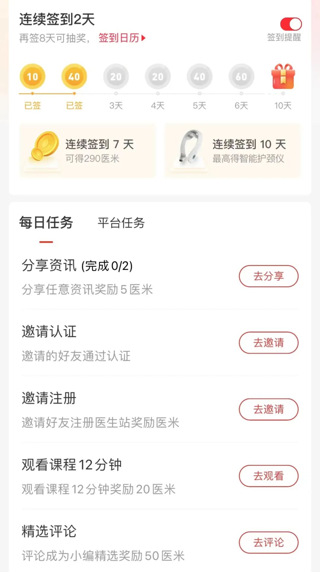 医学界医生站app——我的——每日任务/平台任务