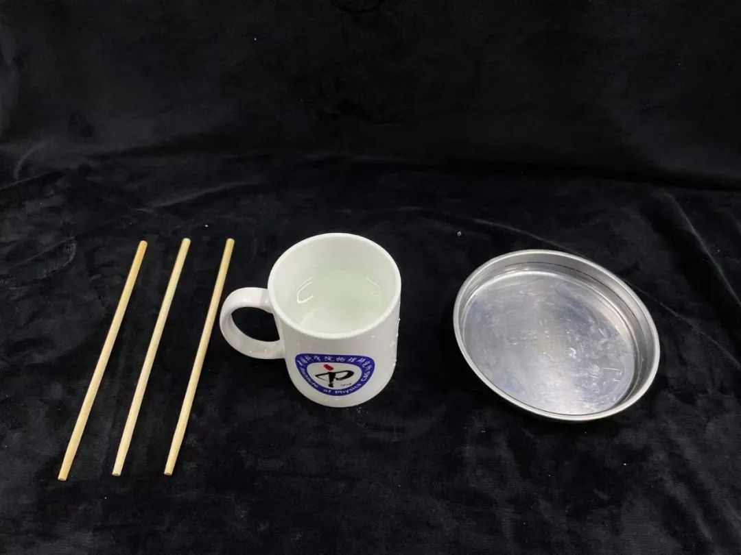 将三根筷子并拢,尝试将三根筷子立在一个平面上。