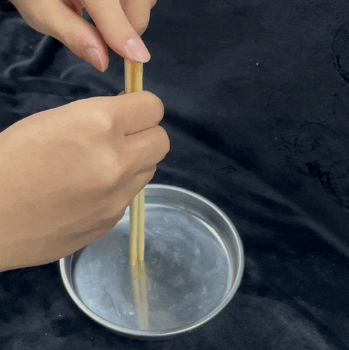 Tips:此步骤需要一定的技巧,如果在尝试的时候筷子水分不够,应该注意重新将筷子润湿。