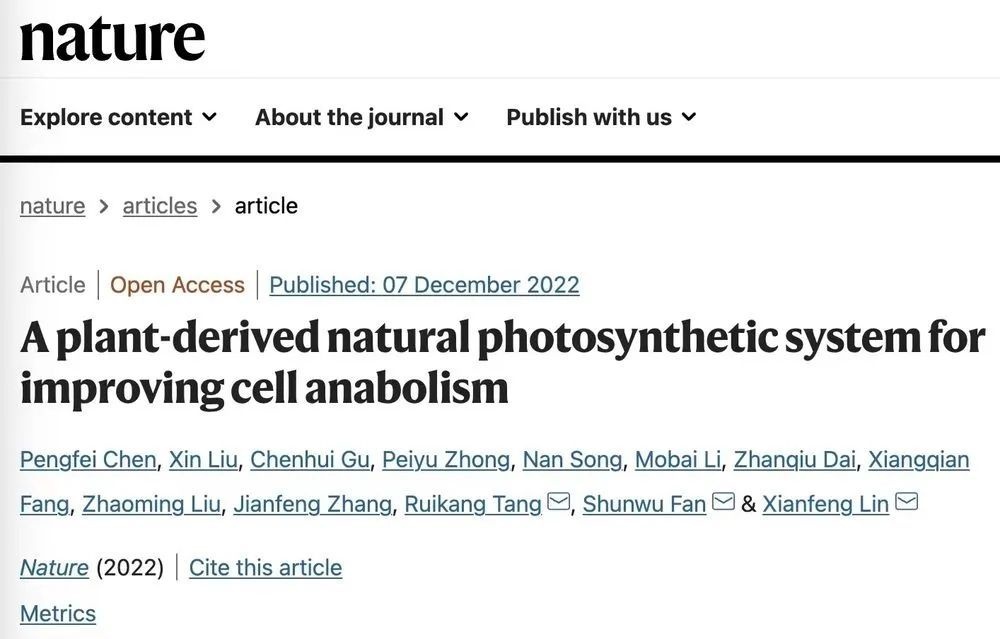 浙江大学医学院附属邵逸夫医院骨科林贤丰医师、范顺武教授团队与浙江大学化学系唐睿康教授团队成功从菠菜中提取“生物电池”,在国际上首次实现将植物类囊体递送到动物体衰老病变的细胞内,让动物细胞拥有植物光合作用的能量。