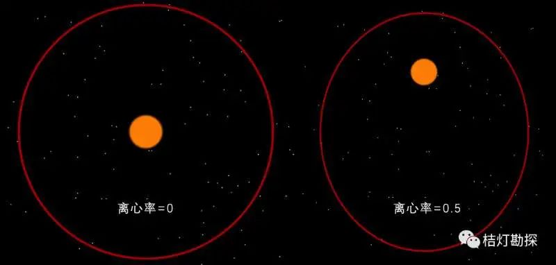 地球的公转轨道的形状并非正圆,而是椭圆状,数学上通过“偏心率”量化椭圆“扁”的程度。椭圆轨道短轴为近日轴,长轴则为远日轴。远日轴常常较稳定,而由圆至椭圆或由椭圆至圆形的轨道变化总是由近日轴即短轴来完成的,地球轨道的平均偏心率为0.028(目前为0.017),变化周期有40万年和10万年两种,分别称为偏心率的长周期和短周期。当短半轴随着离心率的增加缩短时,季节的变化会加剧。但是偏心率直接导致的气候效应很小,因为地球离太阳太远。地球与太阳的距离的近日点和远日点的差距所导致的辐射量变化不大,偏心率主要是通过调控气候岁差的变幅来影响地球的气候系统。