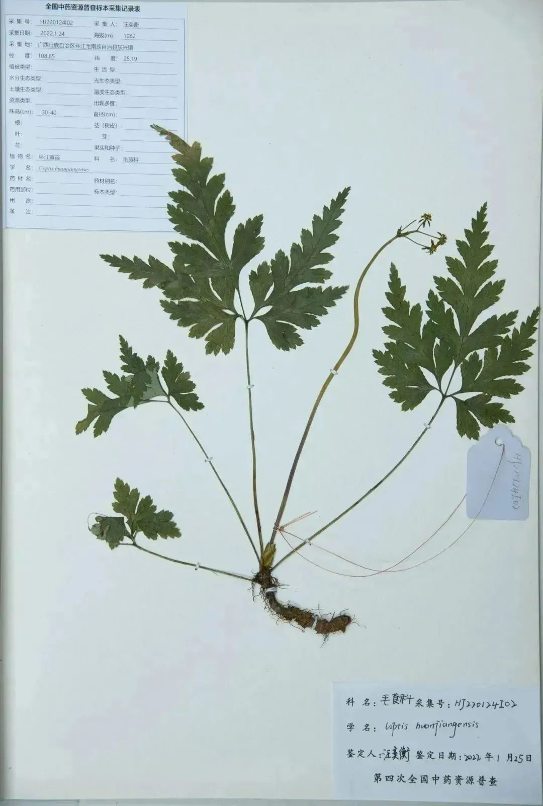 图为环江黄连标本。