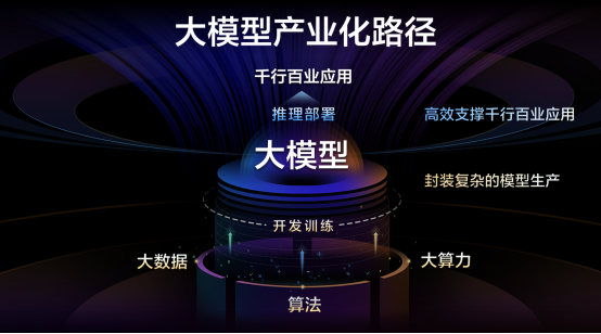 在王海峰看来,具有算法、算力和数据综合优势的企业,可以将模型生产的复杂过程封装起来,通过低门槛、高效率的生产平台,为千行百业提供大模型服务,从而形成一条大模型产业化路径。在这一条产业化路径上,百度飞桨已经通过文心大模型进行了有力的验证。