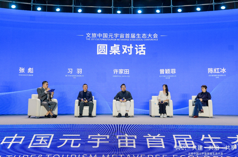 圆桌对话环节,由《时尚》杂志社时尚COSMO市场经理张彪主持,尼欧数字首席执行官许家田、杭州万像文化科技有限公司副总裁曾颖菲、厦门市多元跃动科技有限公司CEO习羽、优尼康网络科技有限公司总裁陈红冰等共同参与。嘉宾们围绕元宇宙概念在时尚行业的探索、时尚品牌在元宇宙中的创意新玩法、还有时尚与文旅在元宇宙中的结合与未来发展趋势等议题进行了深入交流。对于未来时尚元宇宙模式的愿景展望,嘉宾们各抒己见,认为中国文化传媒集团举办此次论坛正当其时,《时尚》杂志社引领打开了时尚元宇宙之门,寄语未来时尚元宇宙的发展要放眼全球、以高度的民族文化自信来打造独具特色的时尚审美。