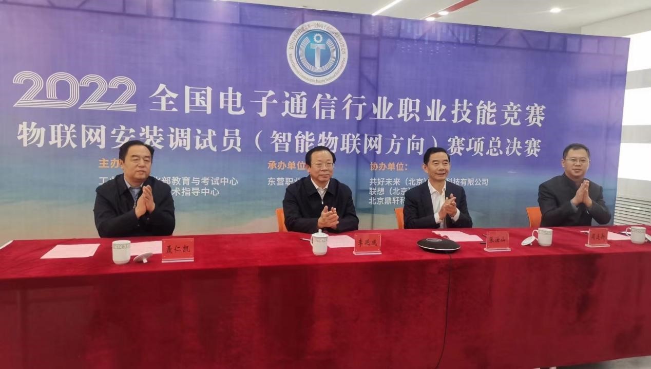 12月10日,由工业和信息化部教育与考试中心、中国就业培训技术指导中心主办,东营职业学院承办,共好未来(北京)教育科技有限公司、联想(北京)有限公司、北京鼎轩科技有限责任公司协办的2022年全国行业职业技能竞赛——第三届全国电子通信行业职业技能物联网安装调试员(智能物联网方向)决赛拉开帷幕。工业和信息化部教育与考试中心副主任刘明亮、人才评价处处长姚明,大赛裁判长、天津中德应用技术大学物联网系主任王新强,高校毕业生就业协会信息化工作办公室主任孙文升,东营职业学院党委副书记、校长李延成及大赛裁判员、仲裁员、参赛选手、新闻媒体、技术支持人员等参加开幕式。东营职业学院副校长张汝山主持开幕式。