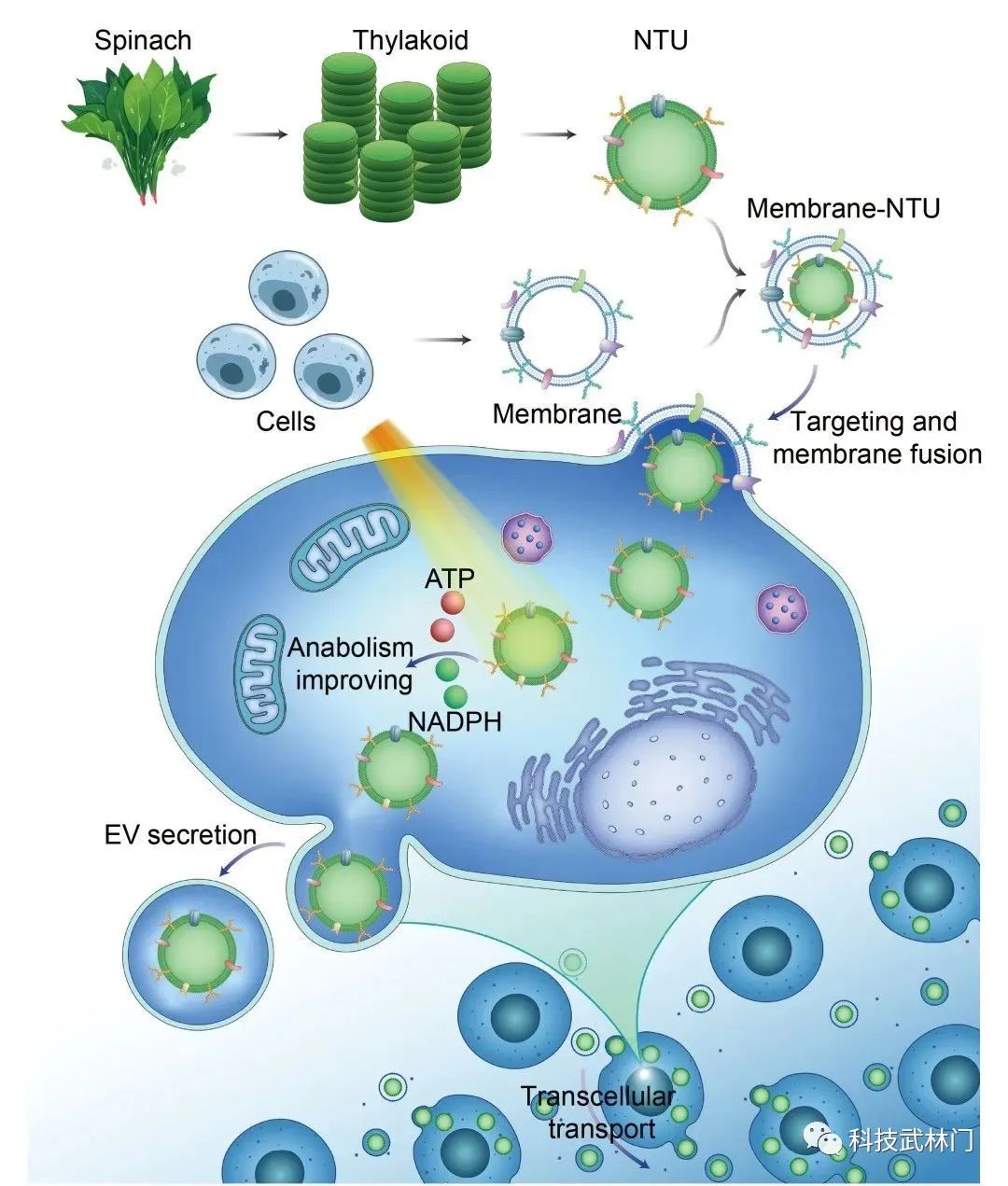 菠菜,曾因“大力水手”这个卡通形象给许多70后、80后留下了深刻的童年回忆。如今,菠菜除了每天照常出现在我们餐桌上外,科学家们真正赋予了它“力大无穷”的期待。浙江大学医学院附属邵逸夫医院骨科林贤丰医师、范顺武教授团队与浙江大学化学系唐睿康教授团队成功从菠菜中提取了具有光合作用的“生物电池”——类囊体,并通过精密的制备技术,在国际上首次实现植物的类囊体跨物种递送到动物体衰老病变的细胞内,让动物细胞也拥有植物光合作用的能量,以此敲开逆转细胞退变衰老的“时光之门”。