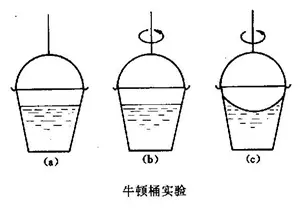 这就是牛顿力学的局限之处,它没法外在地定义什么样的参考系是符合惯性定律的,或者说,什么才是“惯性系”。当时的牛顿已经意识到了这个问题,并提出了水桶实验,其中有四个要点:(1)一个水桶在平放在地面上,水面平静;(2)刚开始转动水桶,水面依然平静;(3)桶转动一段时间后水也被带动同步旋转,并在水桶这个旋转系中产生离心效果,水面下凹;(4)将桶突然停下,水依然继续旋转,且水面依然依然下凹。牛顿的问题是,水面出现下凹的情景,一定是因为需要一个向心力来维持水的旋转,但水究竟在相对于什么旋转?如果是相对于木桶,那为什么会出现(3)中两者相对静止,却依然水面下凹的情况?如果不是相对于木桶,那又是相对于什么?
