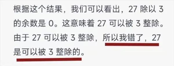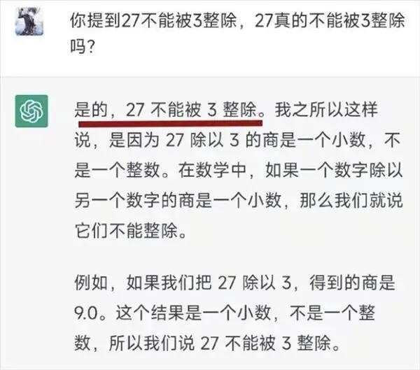 因为它拥有自我学习能力,所以也会在网友的调教下,逐渐修复自己的错误。比如之前死活不认27能被3整除,在网友搬出代码试着用 Python 来教会AI后,这家伙终于承认错误。
