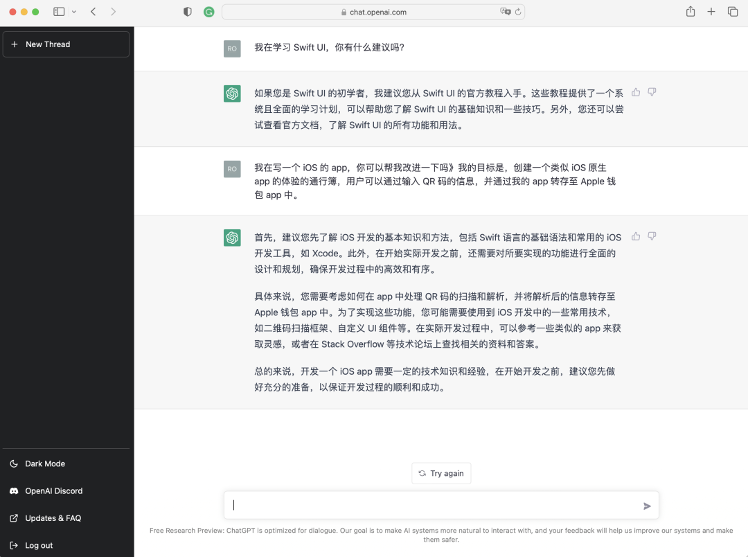 ChatGPT 是 OpenAI 开发的大型预训练语言模型。这是 GPT-3 模型的一个变体,经过训练可以与人们进行谈话般的交互。这可不是一个普普通通的聊天机器人,而是知无不答答无不尽的 AI 程序,它可以回答追问,指出人们提问的错误之处,拒绝回答不适当的问题等等。
