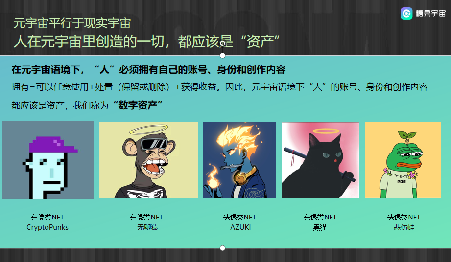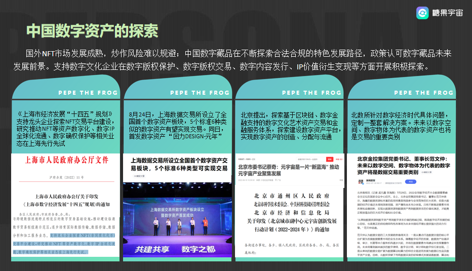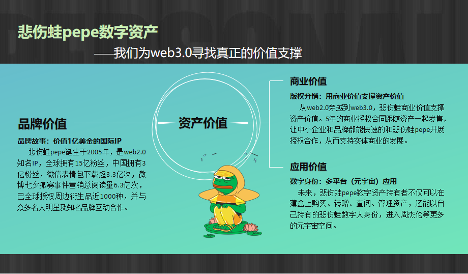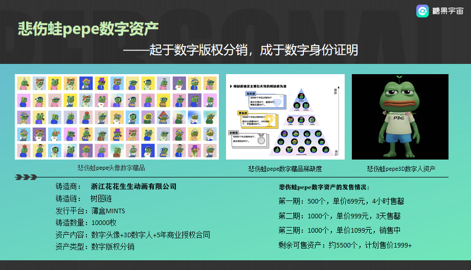 以上是王中雷对行业的一些理解。接下来,分享的是糖果文化正在进行的探索—创造了一个叫做悲伤蛙数字资产的项目。
