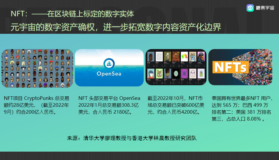 通过NFT给元宇宙内的数字资产确权,为行业拓宽了数字内容资产化的边界。NFT的出现具有极大的意义,一方面让区块链技术真正拥有了除发币之外唯一对C端的应用;另一方面也让更多的实体产业可以真正的应用到区块链技术。在国内,具有NFT技术特征的数字藏品也是同样的发展迅速,web3.0的流量在快速的聚集,必将形成新的商机。