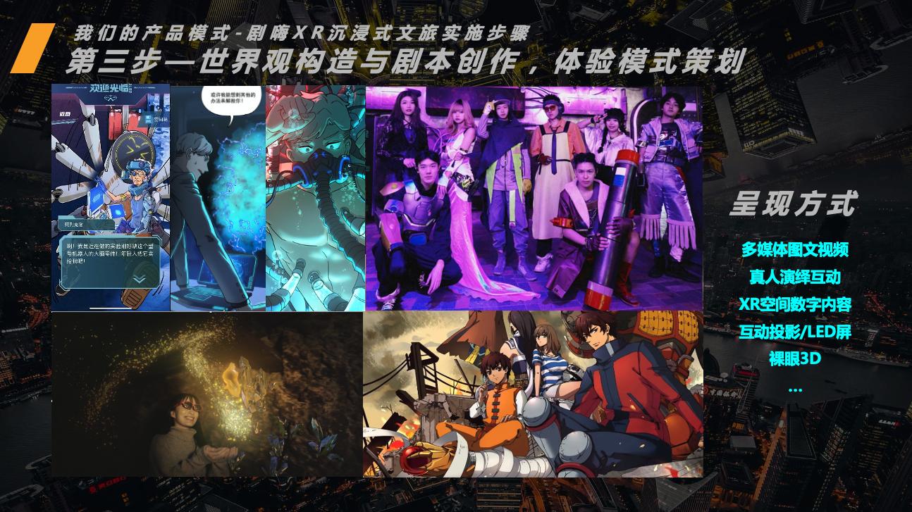 第三步,为整个线上线下场景营造一个完整的可体验的世界观,并在多个终端平台展示出来,且可以与用户进行丰富的互动。