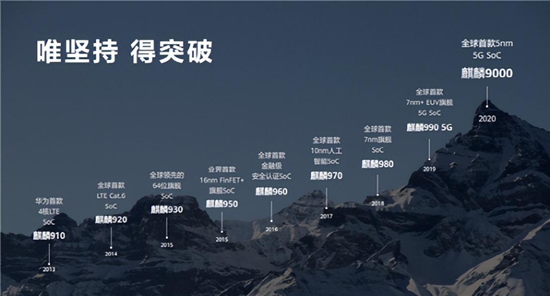 之后的华为,一直坚持研发自家的手机芯片,到 2020 年,华为推出的麒麟 9000 芯片,是麒麟芯片的“最后巅峰”。