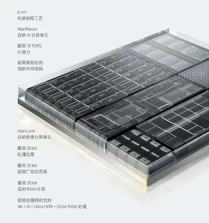 马里亚纳 X作为一款 NPU 芯片,在影像处理中有着更为重要的作用,NPU则是神经网络处理器,具备更强的AI运算能力,能对图像进行智能算法优化。