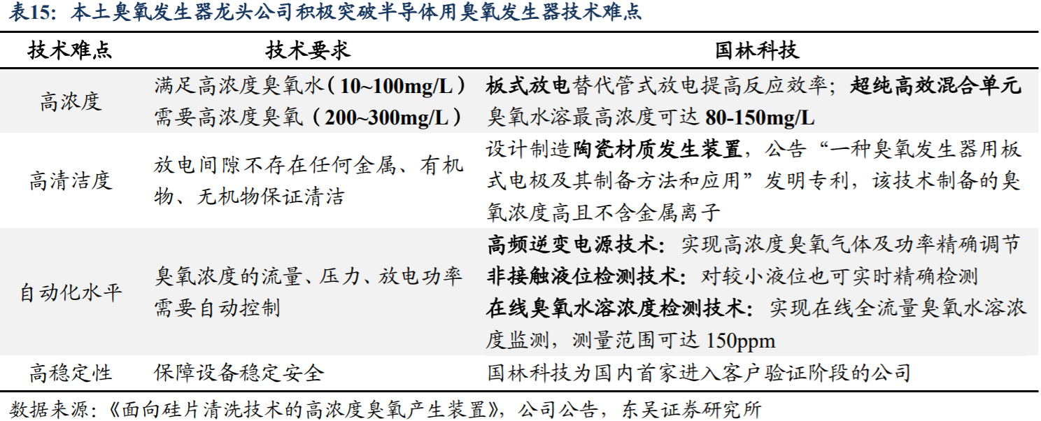 东吴证券袁理深度覆盖臭氧设备龙头国林科技,公司先后研制成功国产首台3kg/h大型中频臭氧发生器、全球第三家50kg/h大型臭氧发生器等,产品传统下游为市政给水、市政污水、工业废水、烟气治理,当前横向拓展半导体清洗应用国产化空间广阔。