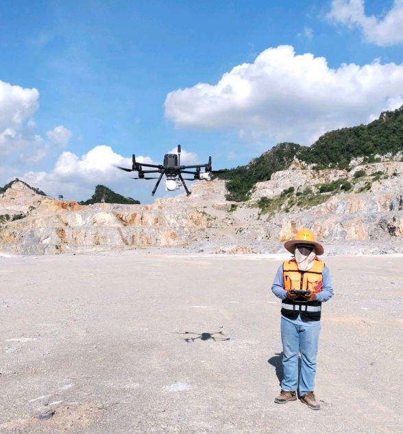 际上导航无人机激光雷达扫描系统在泰国某地矿山应用,搭载际上导航激光雷达的无人机正在为矿山进行测量。际上导航供图